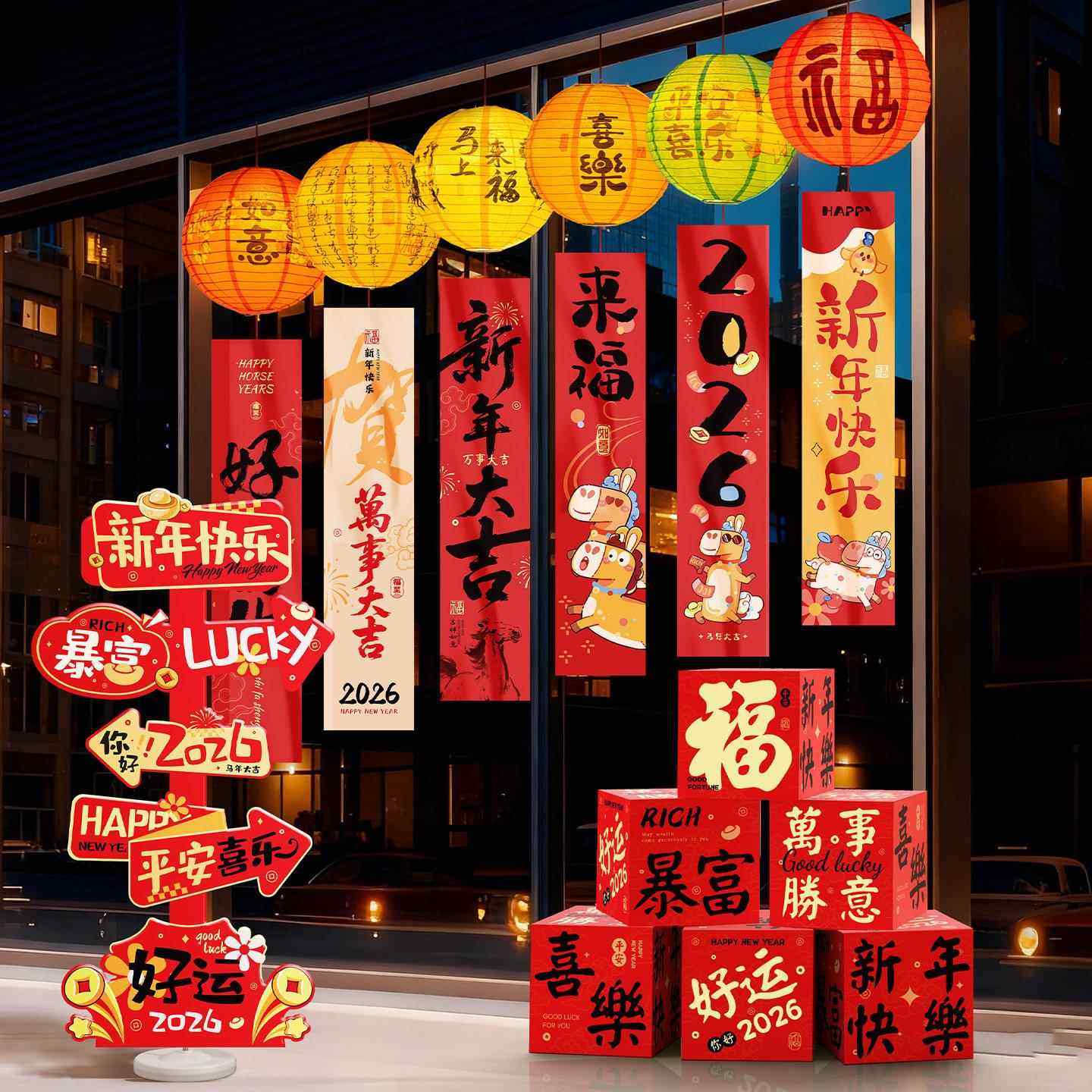 📚 2026新年春节灯笼挂饰条幅福字装饰用品过年挂件店铺商场橱窗布置