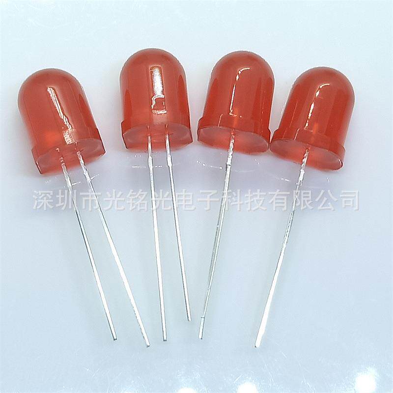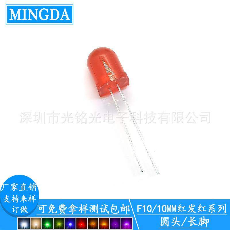 📚 F10/10mm红发红长脚发光二极管圆头红光直插灯珠颜色支持定作