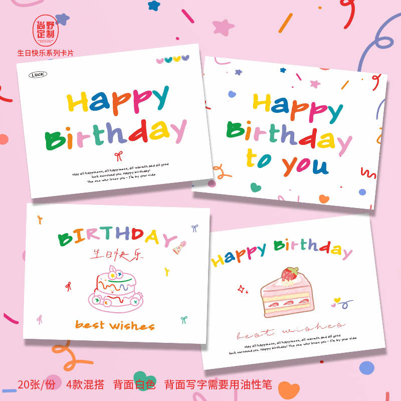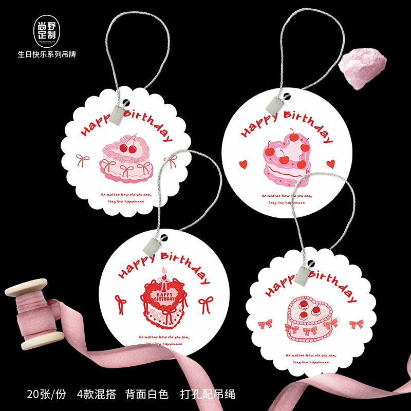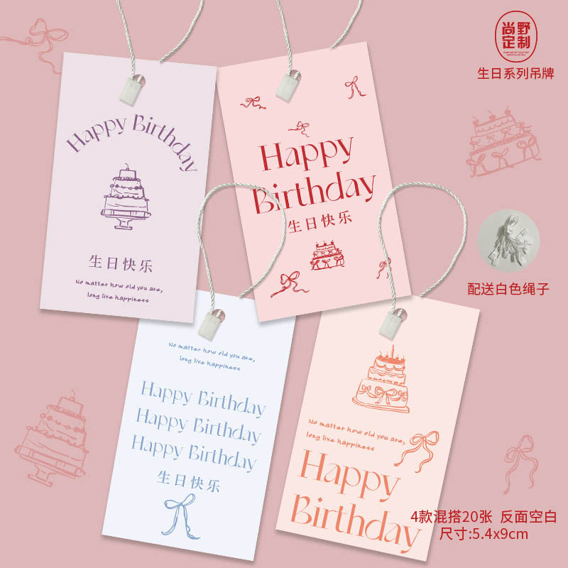 📚 粉色生日快乐卡片创意手绘蛋糕贺卡高级感花店烘焙装饰卡生日吊牌