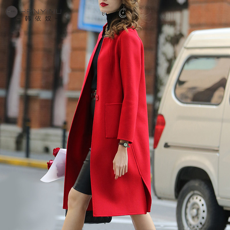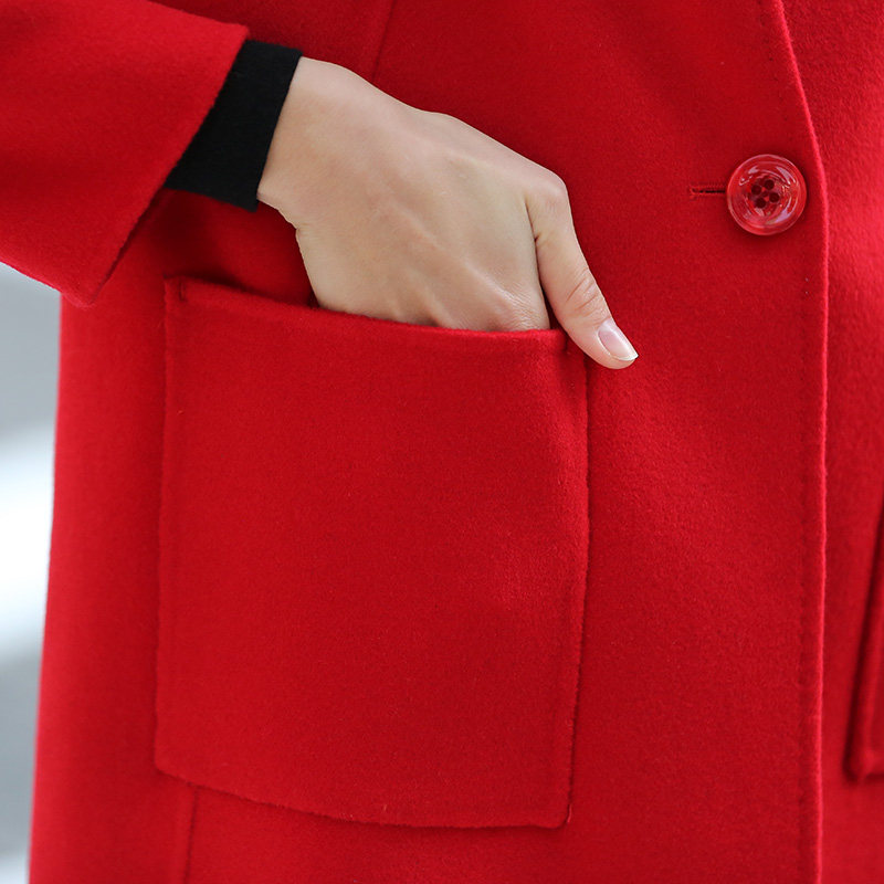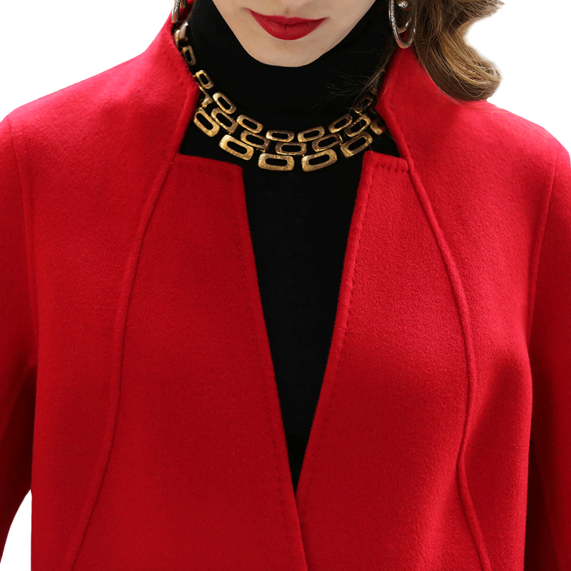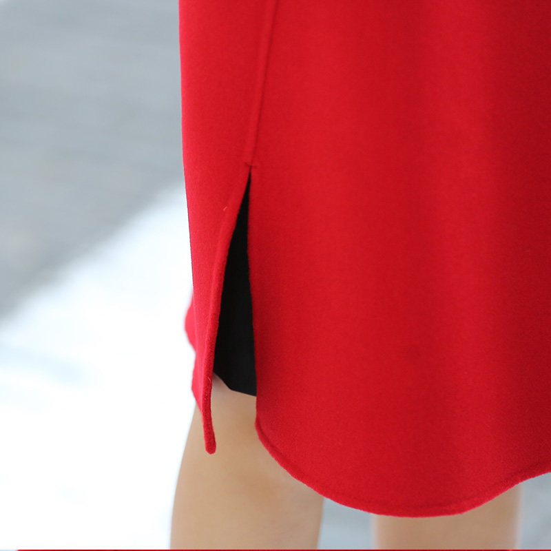 毛呢双面呢双面绒大红色中长