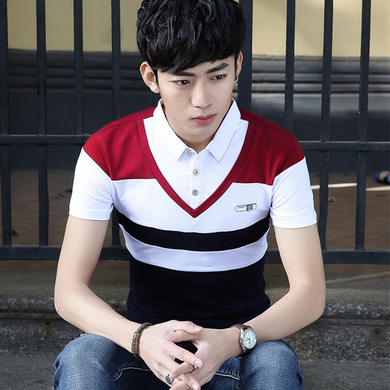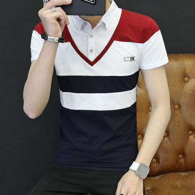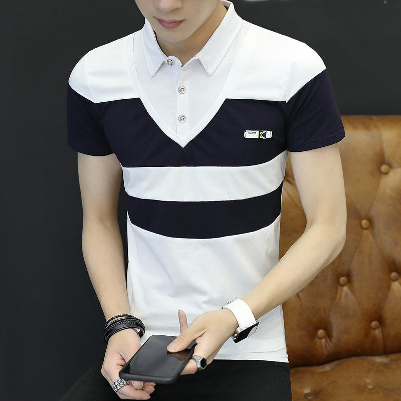 📚 男士假两件套短袖T恤2020夏季衬衫领体恤带领韩版T桖修身青年夏装