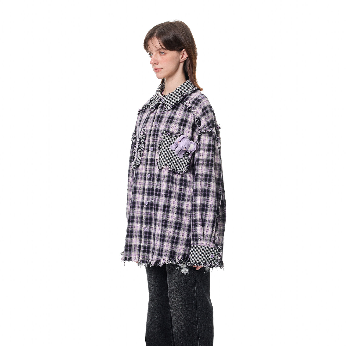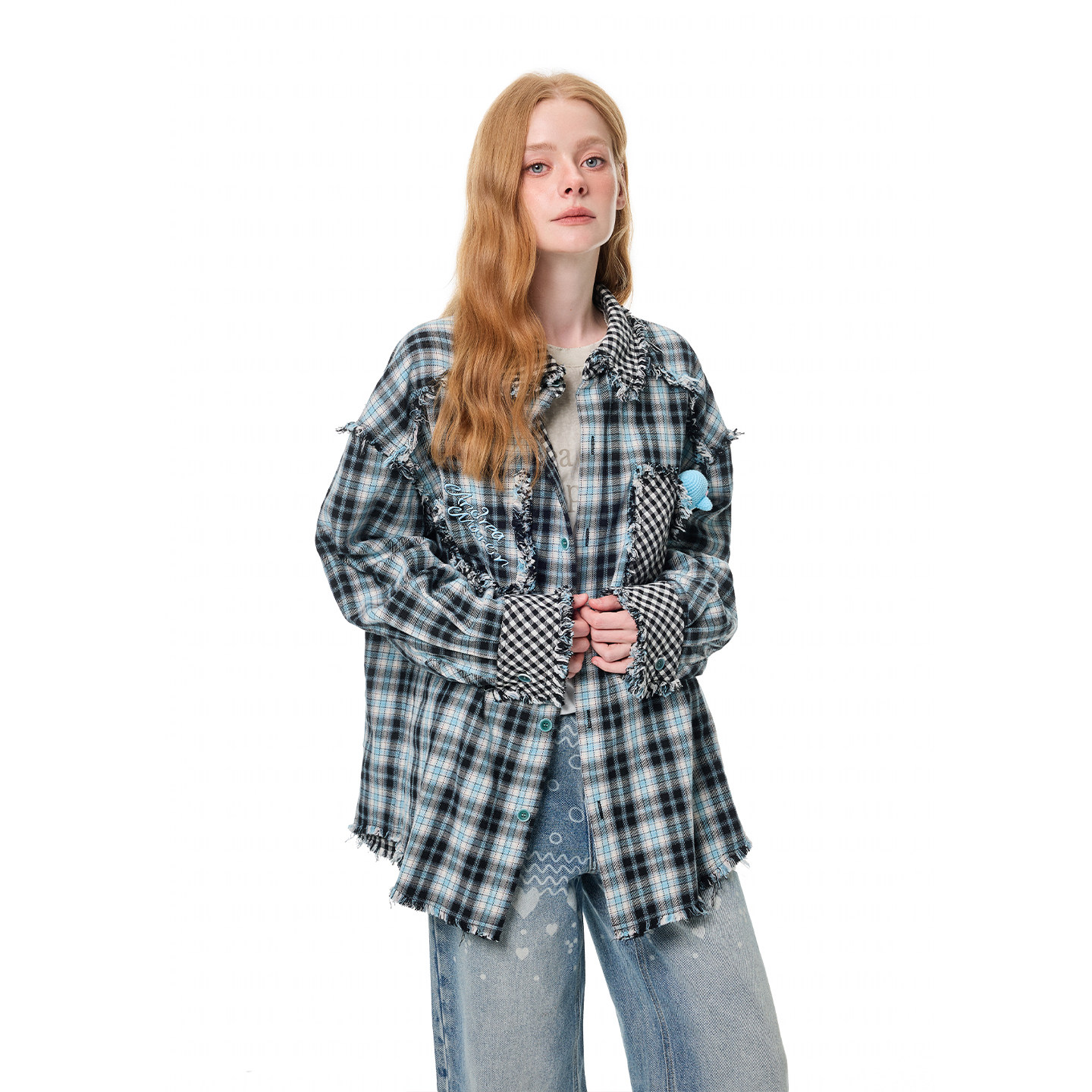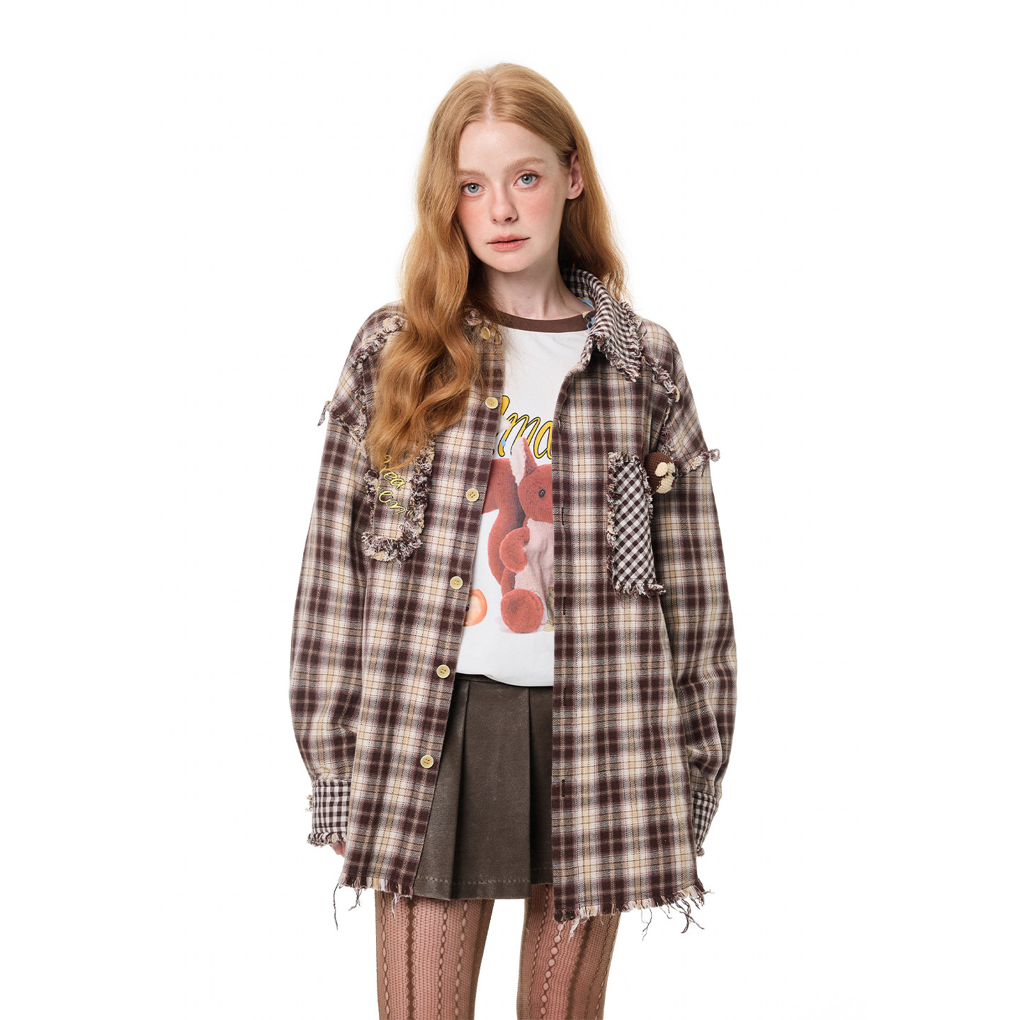 📚 【王昀楷同款】ANDREA MARTIN秋冬新品格纹钩织玩偶毛边长袖衬衫