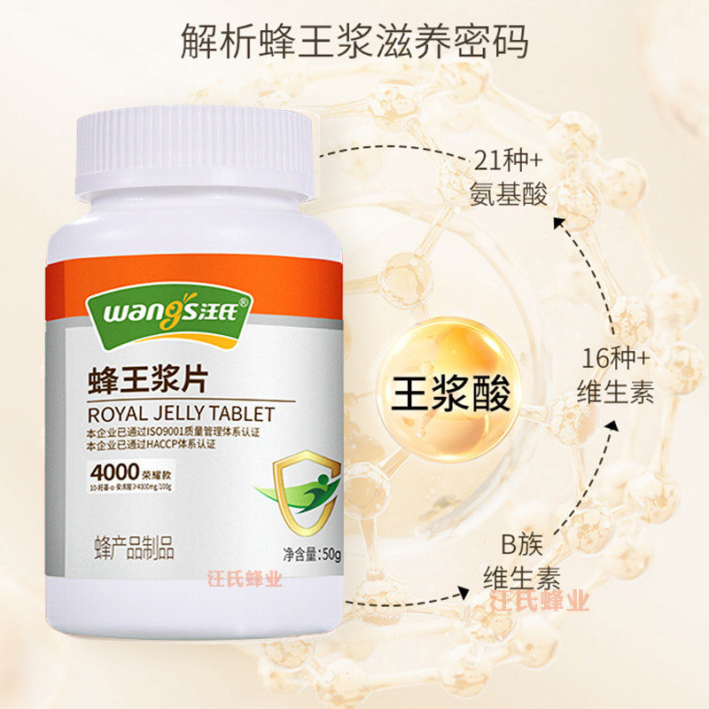 📚 王浆酸≥4%汪氏蜂王浆片50克冻干粉片胶囊蜂皇浆蜂王胎旗舰店官方