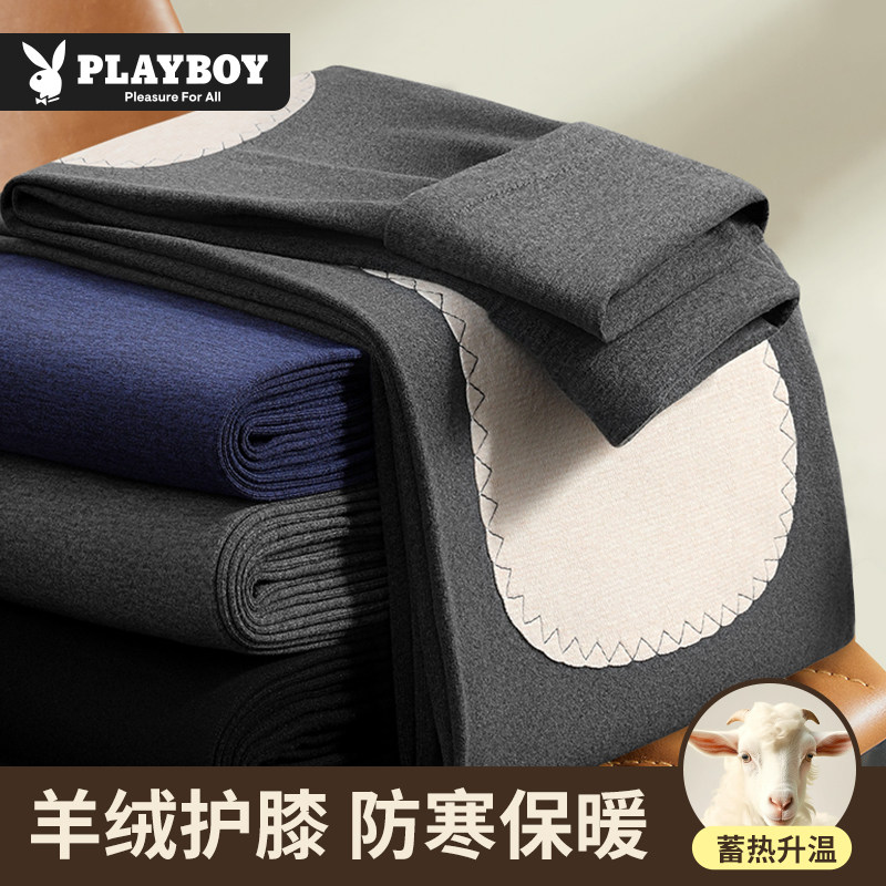 📚 花花公子男士保暖裤男秋冬季打底裤薄款羊绒蚕丝无痕男款秋裤绒裤