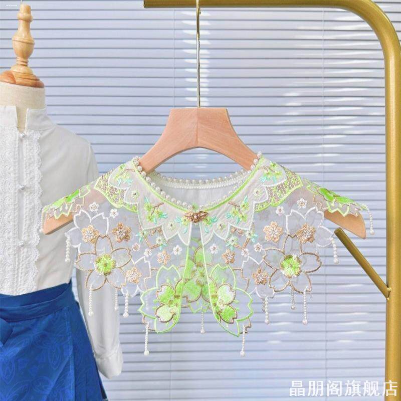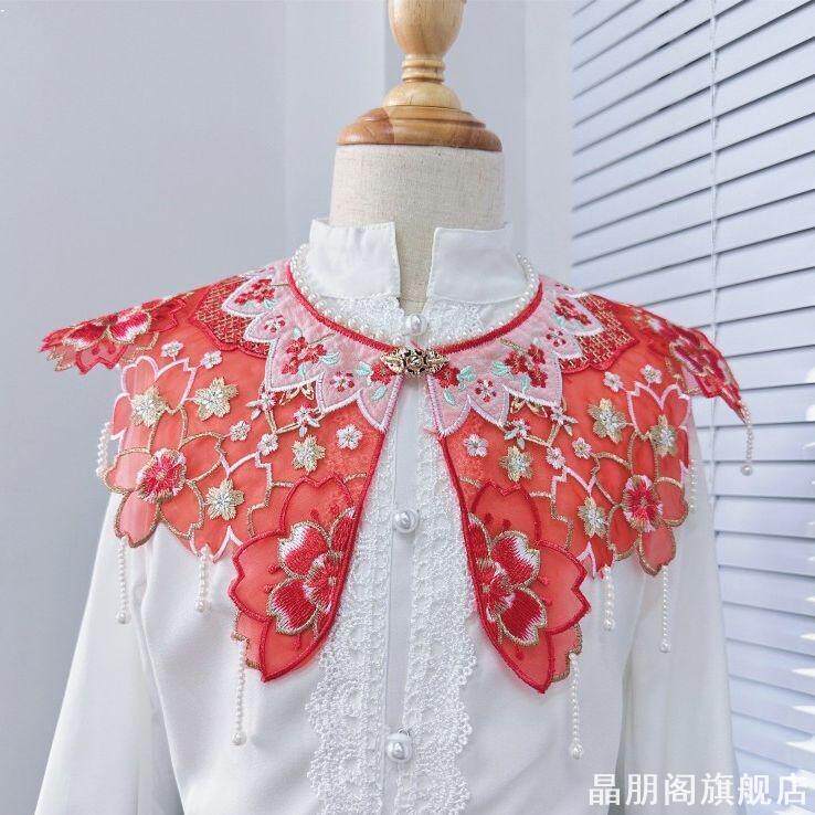 📚 新中式马面裙云肩明制汉服衣领单独假领女坎肩披肩成人大童红粉色