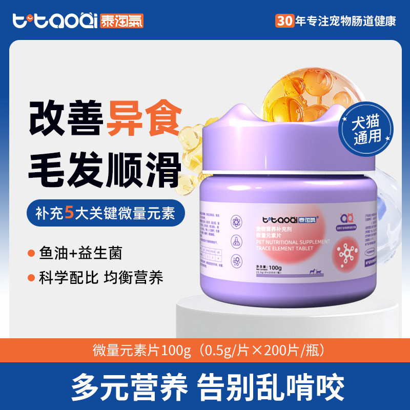 📚 泰淘气微量片猫用螯合微量元素吃猫砂异食癖幼猫狗防啃电线舔墙皮