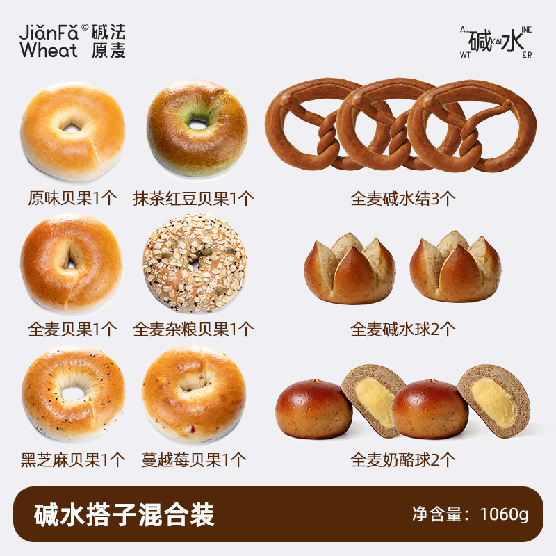📚 全麦大礼包碱法原麦面包贝果三明治面包圈低脂饱手作碱水热量原味