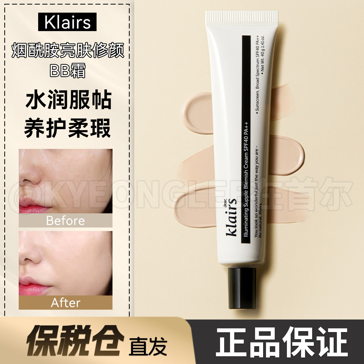 📚 保税仓Klairs蔻徕氏瓷光bb霜提亮妆前自然修饰肤色水润不卡粉日常
