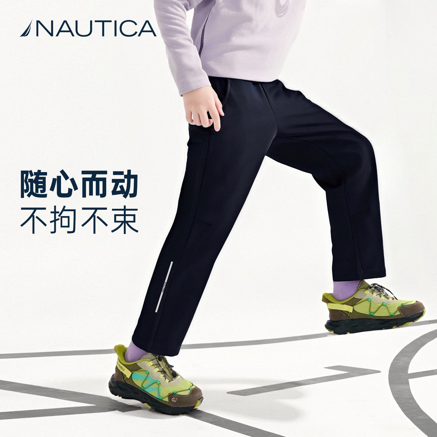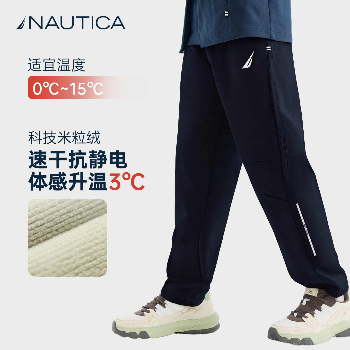 📚 NAUTICA儿童薄绒裤子男童运动裤加厚女童大童软壳防水防风冲锋裤
