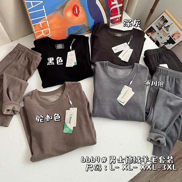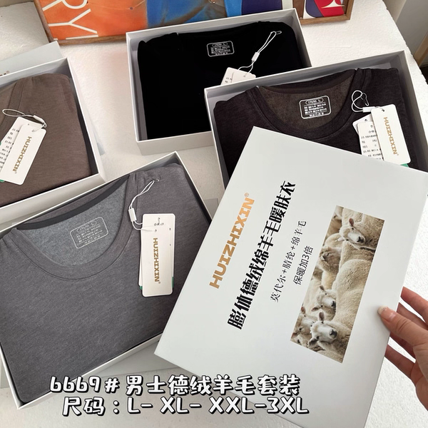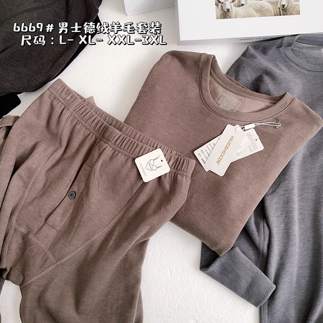 📚 惠芝欣6669男秋冬德绒羊毛保暖内衣套装圆领长袖长裤发热秋衣秋裤