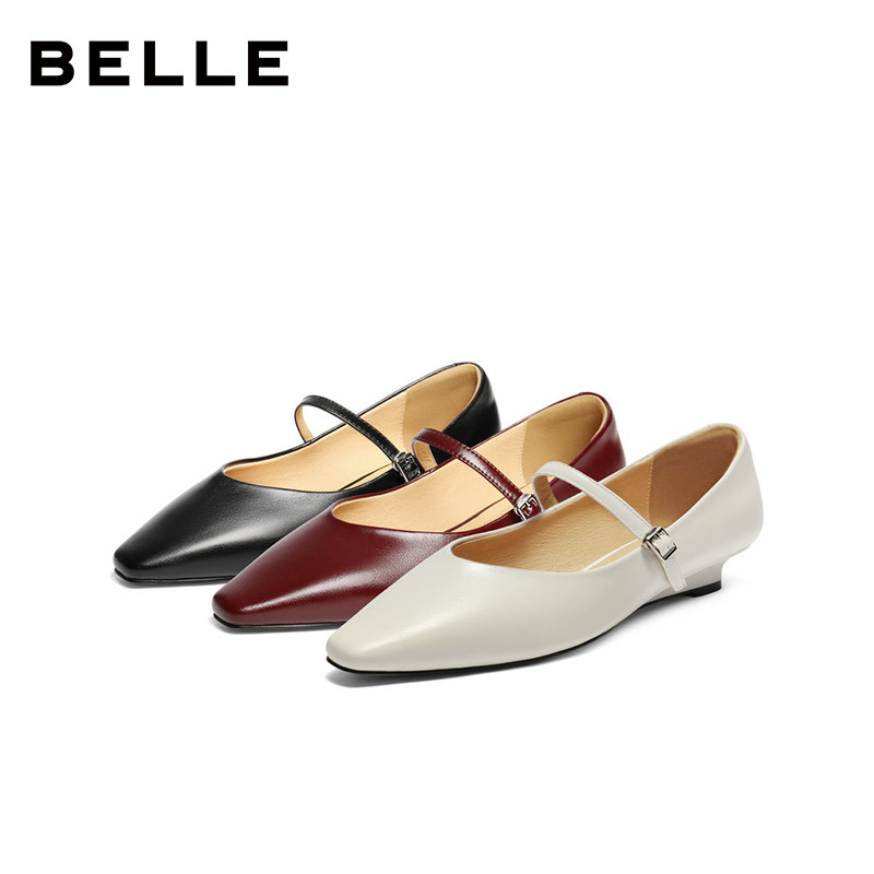 📚 百丽复古法式一字带黑色玛丽珍鞋女新款浅口单鞋子B2686CQ5