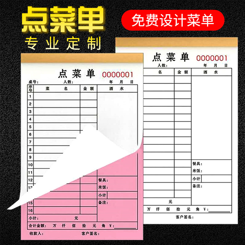 📚 点菜单二联订制餐厅两联烧烤三联定制定做点菜本单据一联点餐单