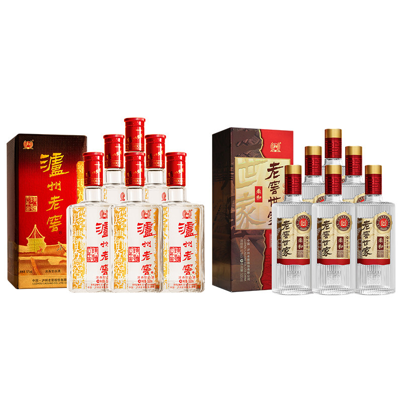 📚 泸州老窖六年窖头曲500ml*6瓶整箱+世家柔和500ml*6瓶整箱白酒