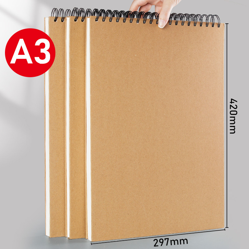 📚 A3素描本硬壳线圈速写本加厚160g美术生专用手绘本幼儿园绘画a3纸小学生硬皮竖翻画本空白图画本子大号画册