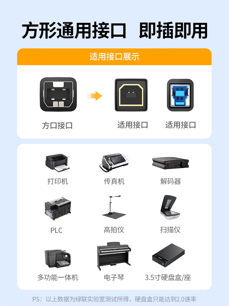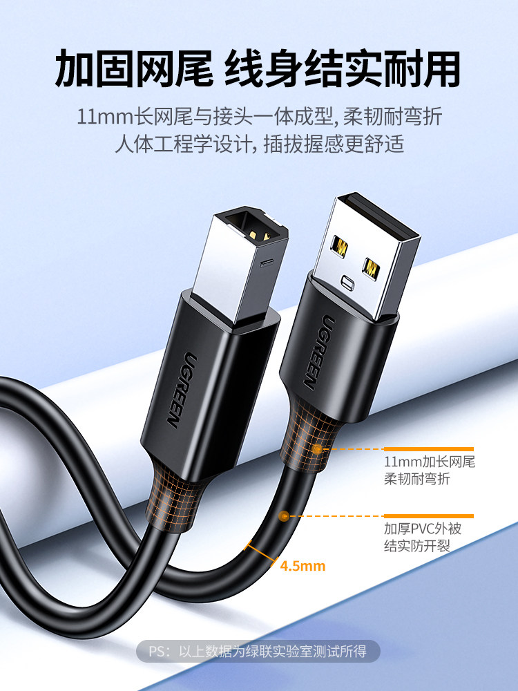 📚 绿联 UGREEN USB Type B Male to A Male USB 2.0 Printer Cable