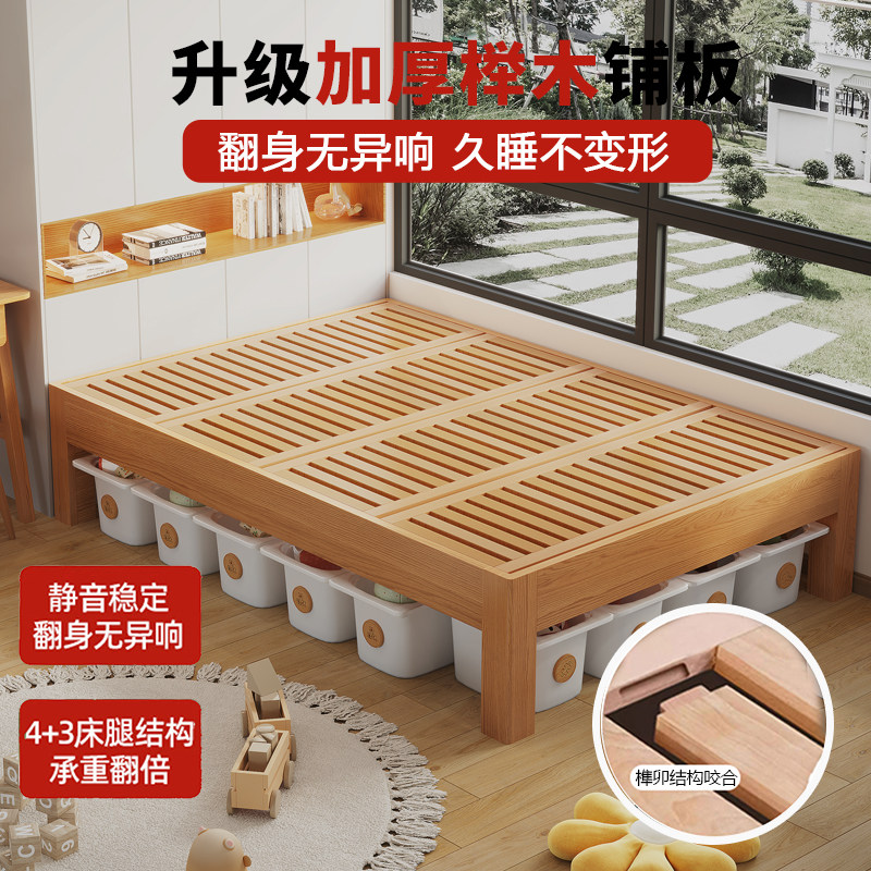 📚 全实木床无床头橡木政府补帖1米5单人榫卯结构榻榻米榉木排骨架床