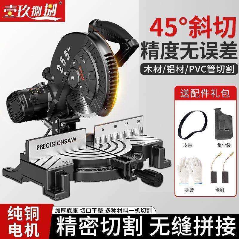 📚 高精度锯铝机铝合金木铝材多功能切角机45度小型切割机斜切锯10寸