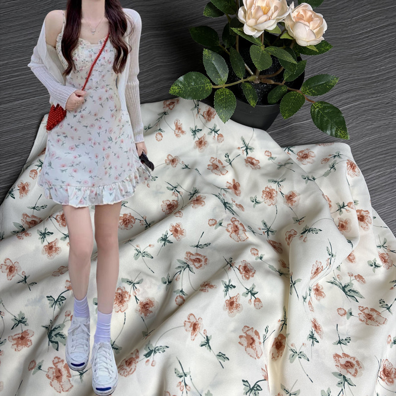 📚 连衣裙布料垂感高档平纹缎印花面料夏仿蚕丝柔顺抗皱不透仿真丝布