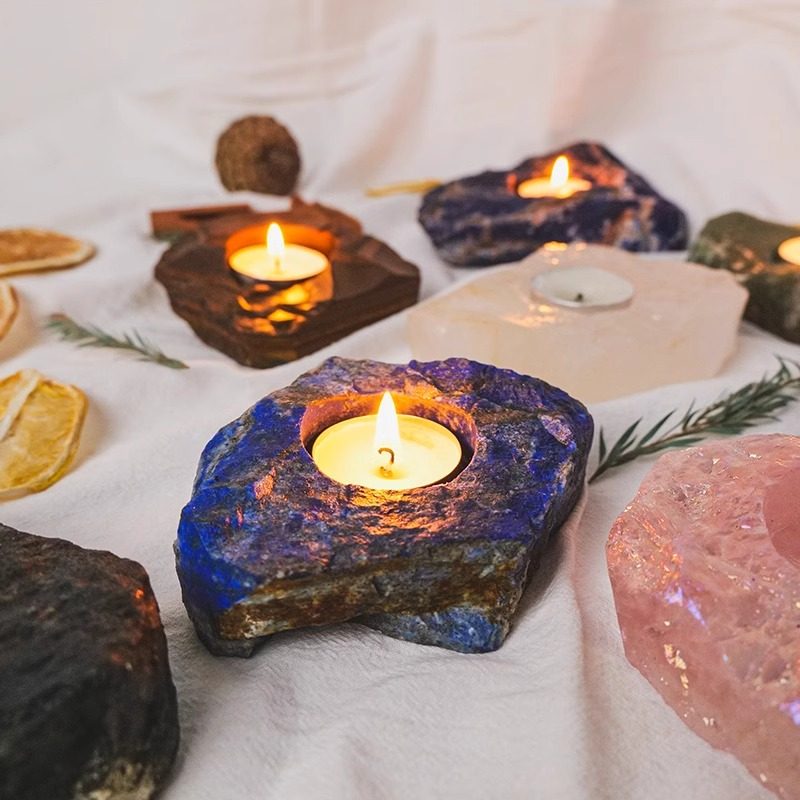 📚 天然矿石烛台喜马拉雅盐香薰灯蜡烛晚餐浪漫烛光原石佛具装饰摆件