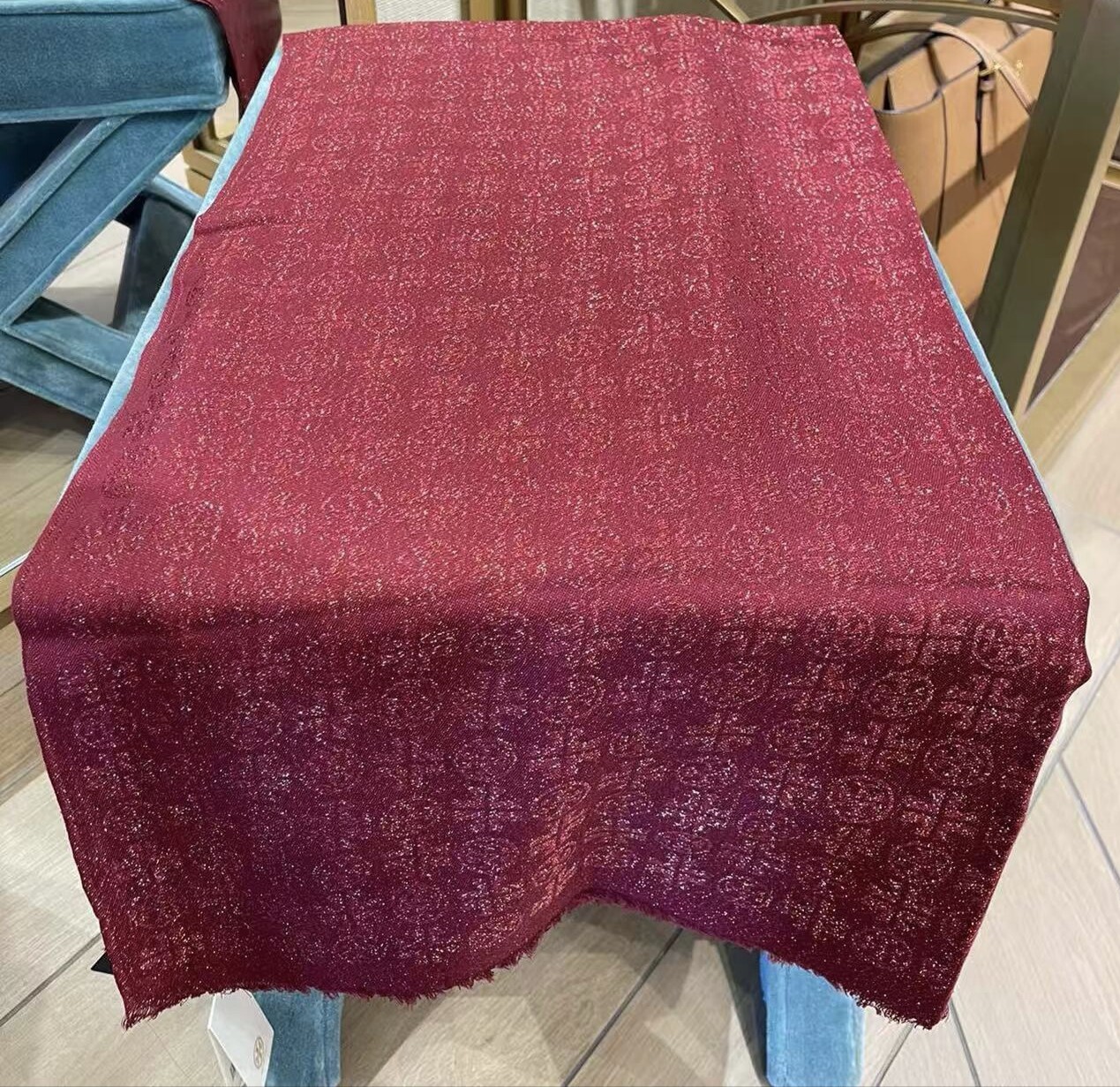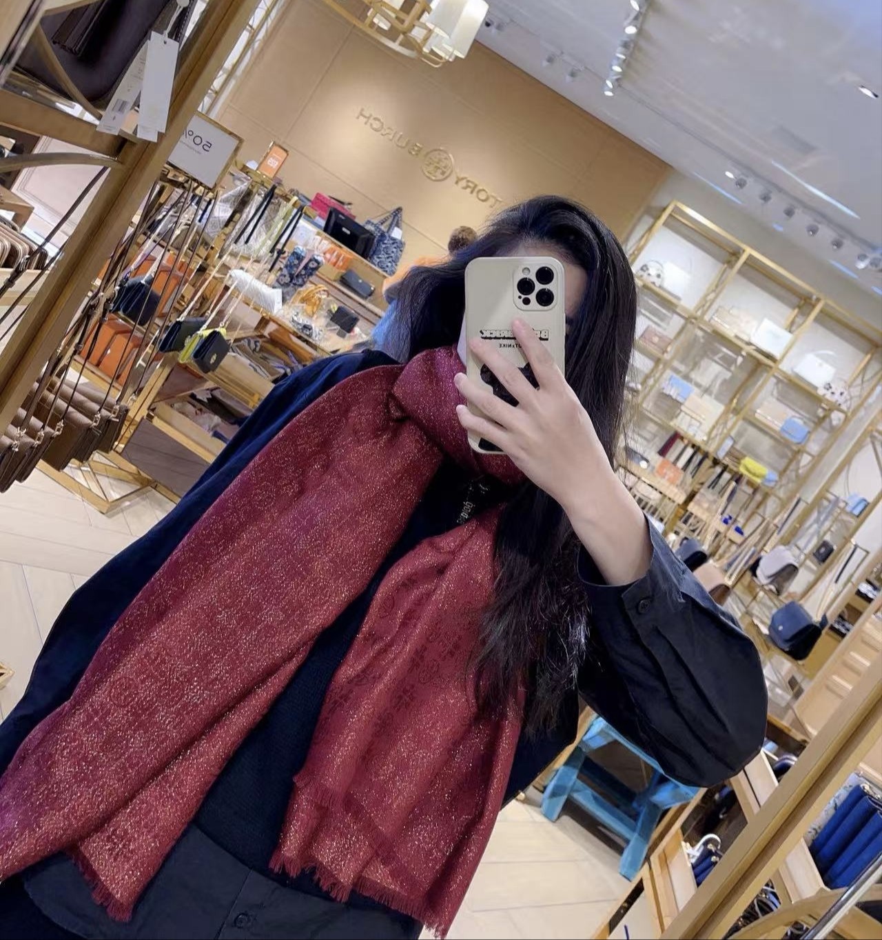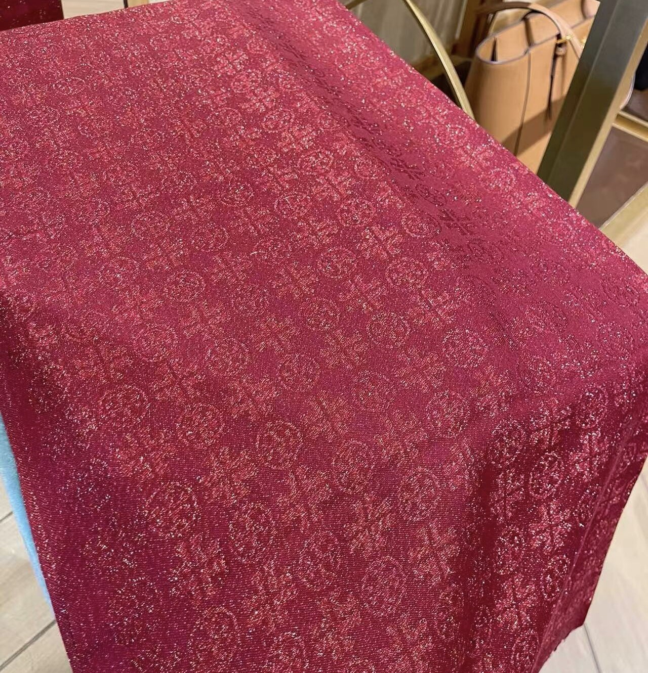 📚 国内现货 葡萄酒红金丝 tory burch 汤丽柏琦围巾丝巾女士披肩