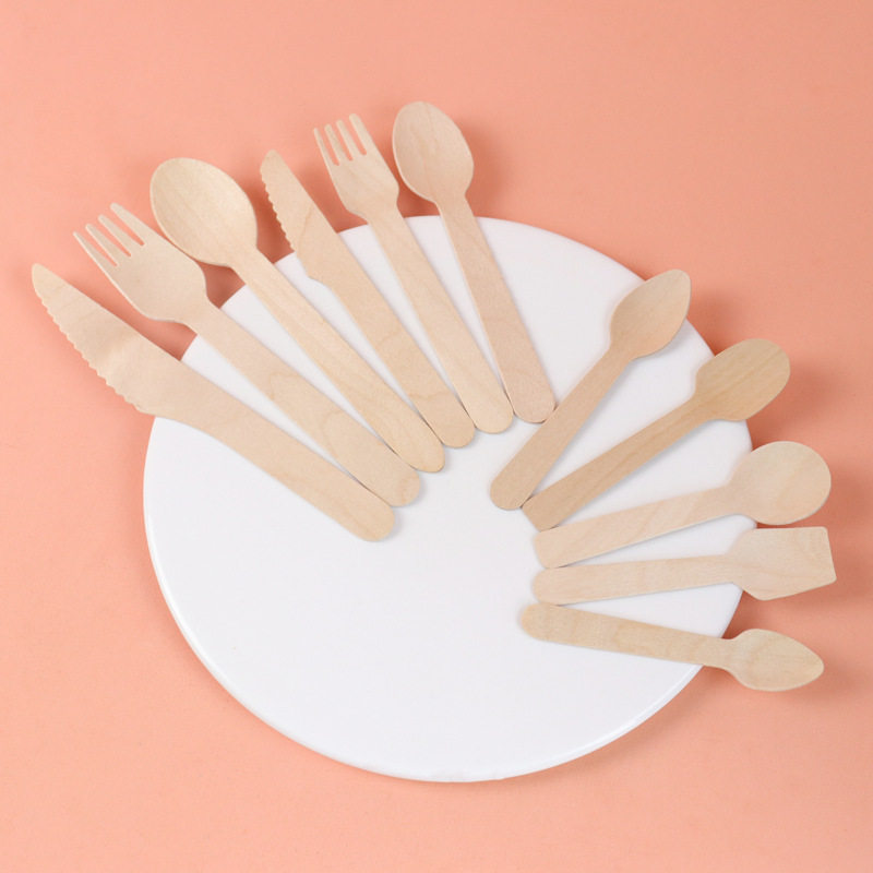 📚 一次性木质刀叉勺餐具套装跨境定制独立包装冰淇淋酸奶勺子木叉子