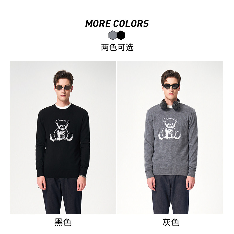 📚 【纯羊毛】Mangano曼加龙毛衣套头圆领针织衫秋冬新款休闲男