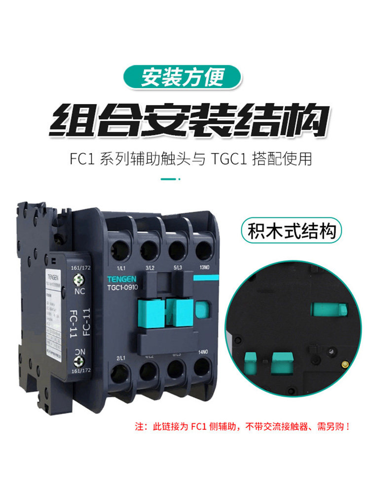 📚 TENGEN天正电气FC1-11交流接触器侧辅助触头TGC1辅助触点侧面安装
