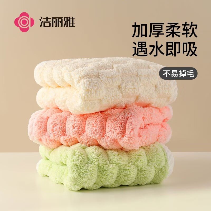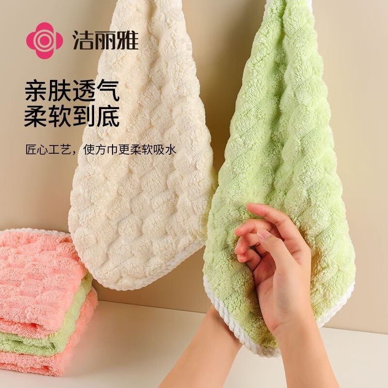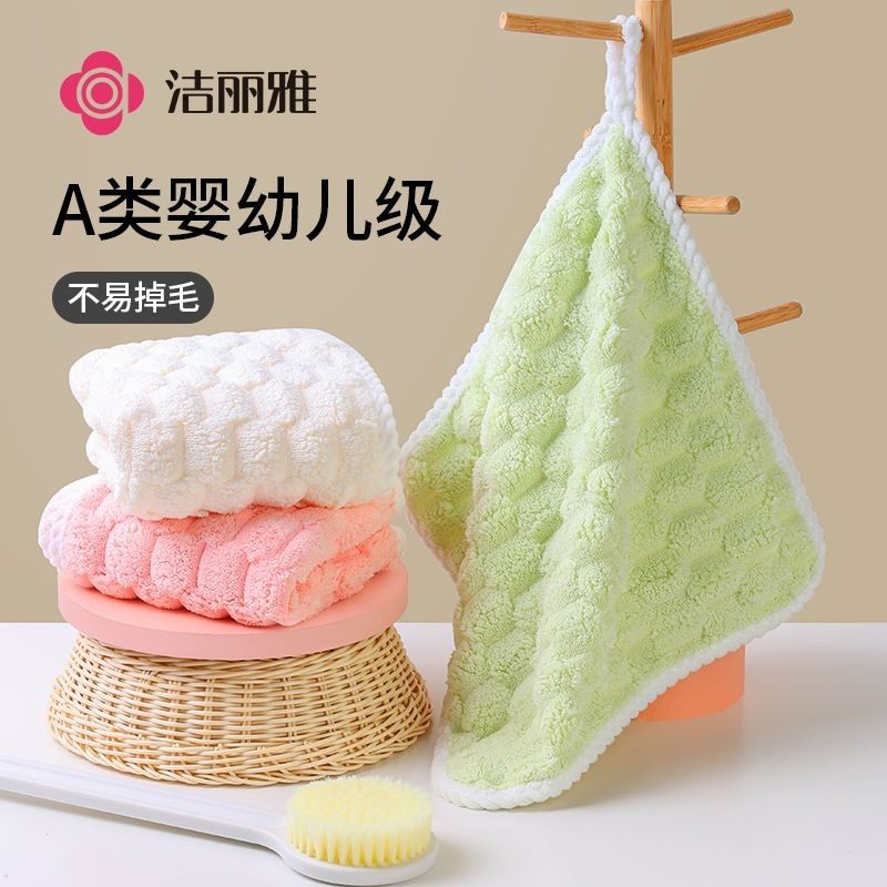📚 洁丽雅毛巾方巾儿童宝宝小毛巾A类比纯棉吸水柔软擦手面巾挂钩3条