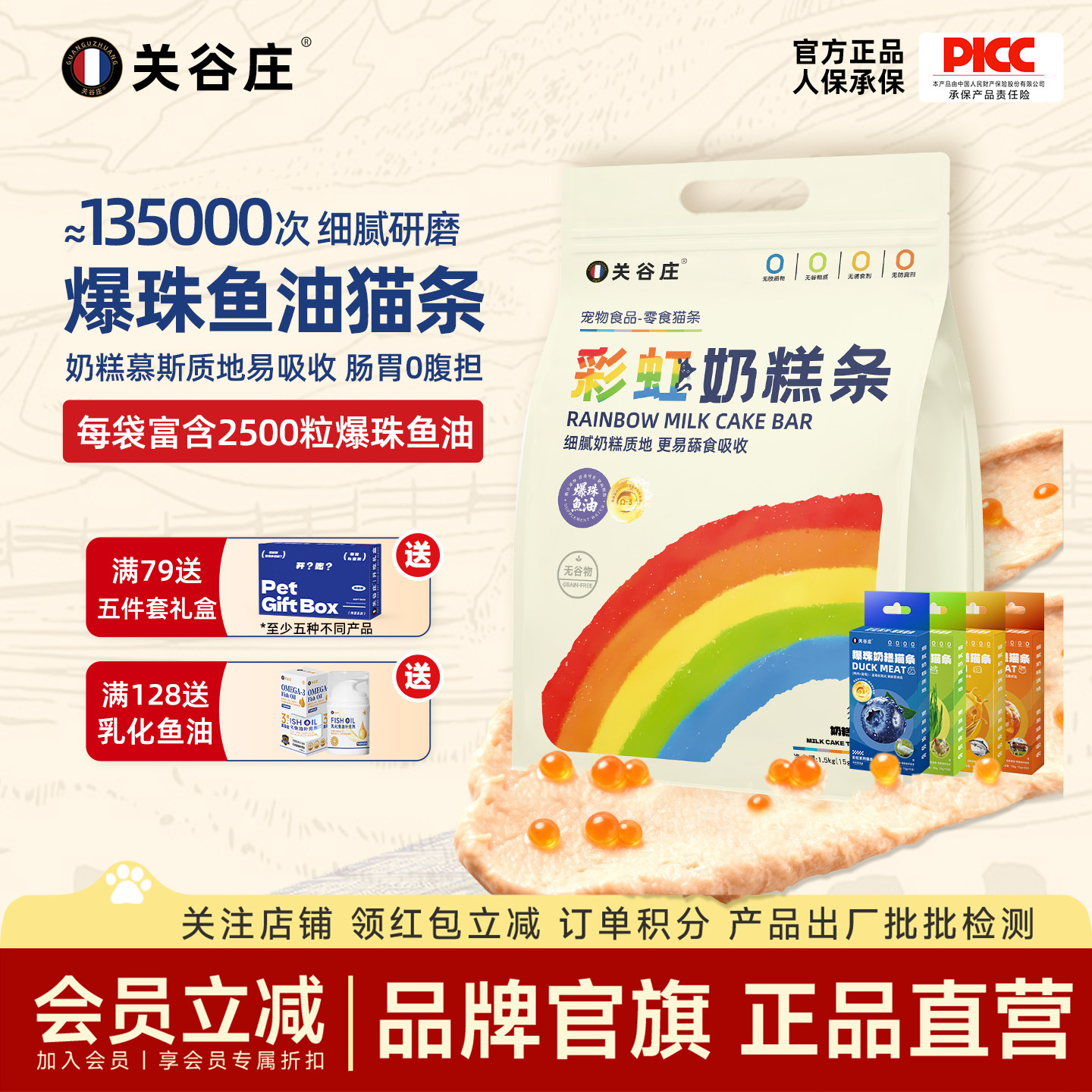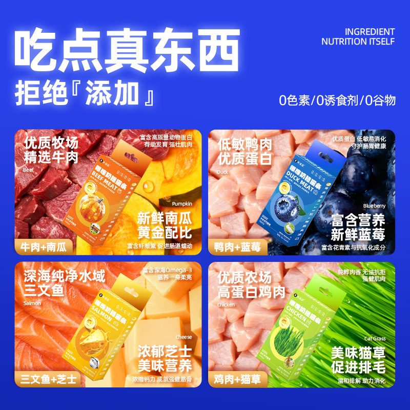 📚 关谷庄彩虹零食爆珠鱼油猫条奶糕慕斯质地猫咪食品幼猫罐头湿粮