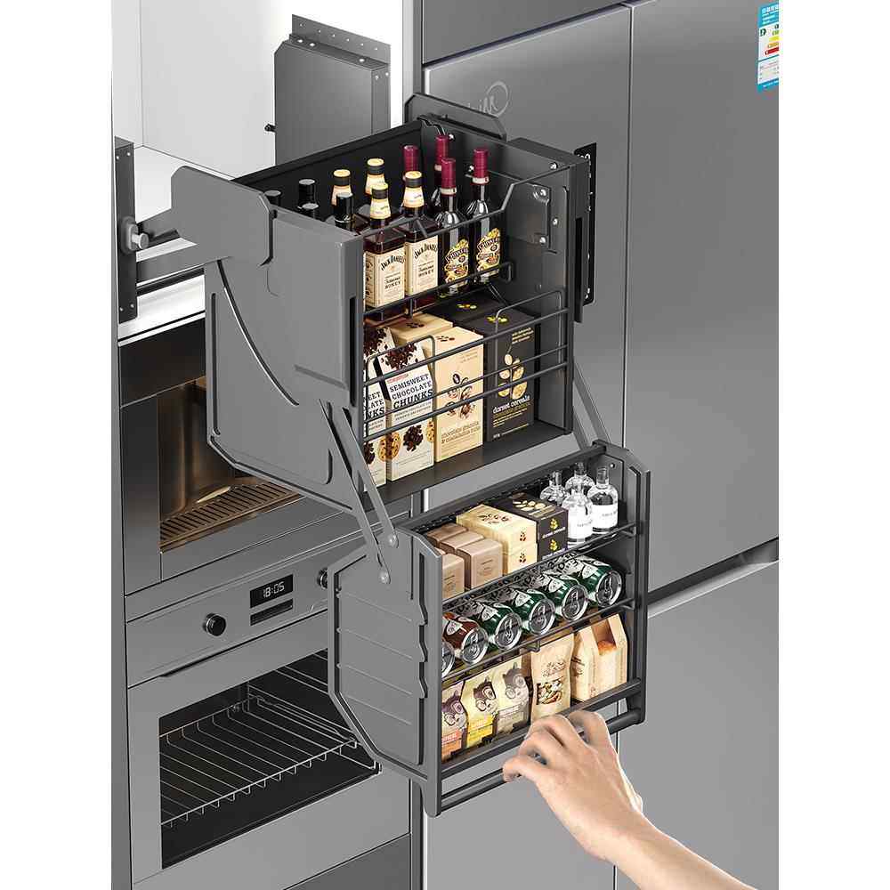 📚 吊柜升降拉篮厨房橱柜高柜冰箱烤箱上零食调味拉篮加深收纳置物架