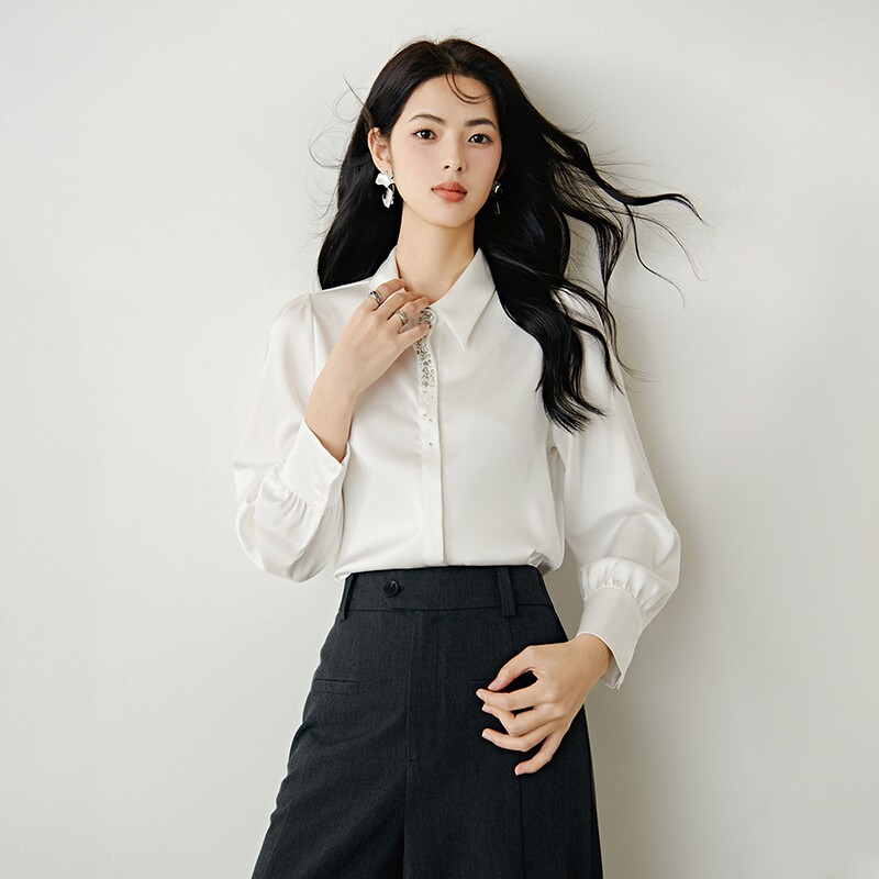 📚 晚白2026年春新款气质轻熟风翻领上衣干练职场OL通勤衬衫女