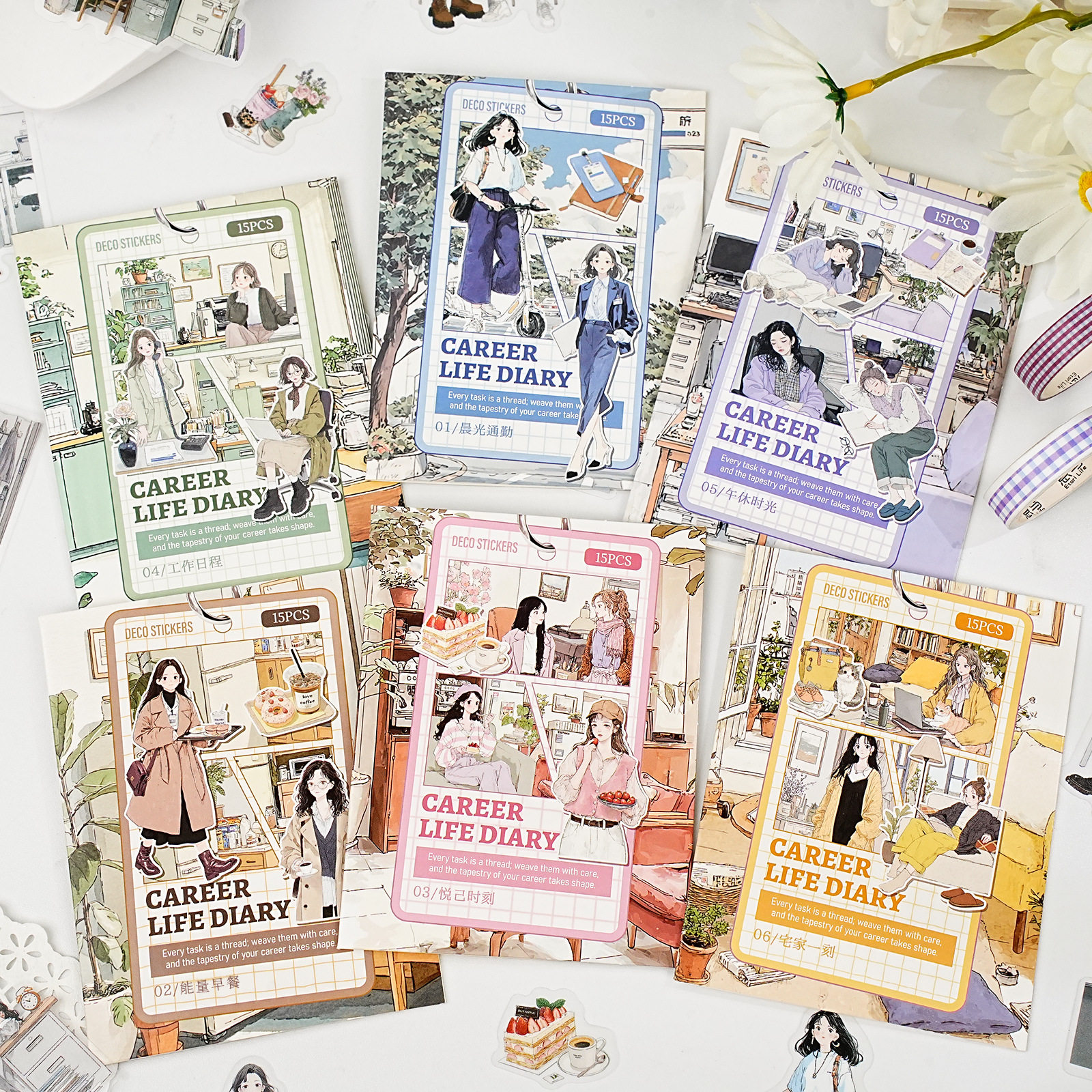📚 职场修行系列PET防水贴纸包15张入 生活人物主题手帐装饰素材贴画