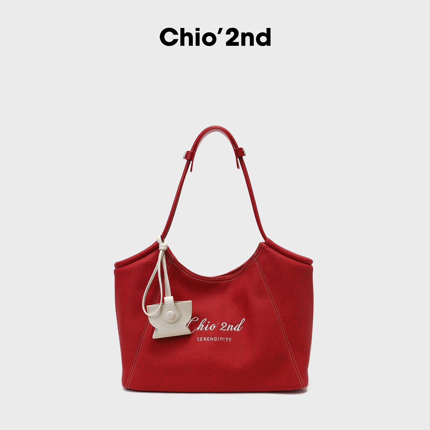 📚 南风Chio2nd 氧气都市托特包大容量帆布纹理红色包包女手提单肩包