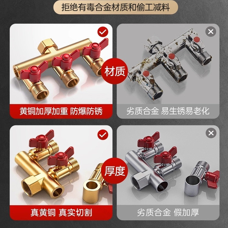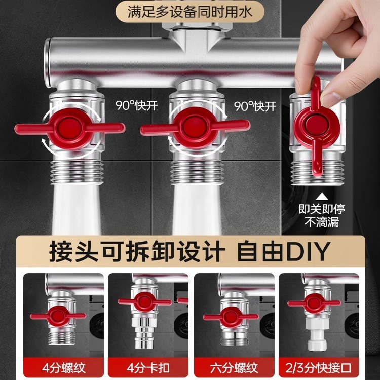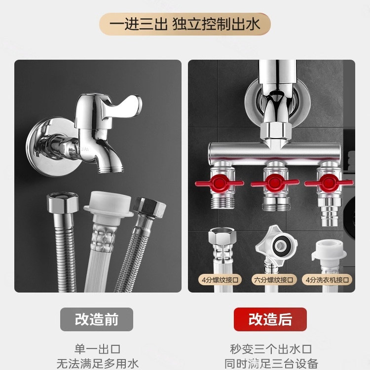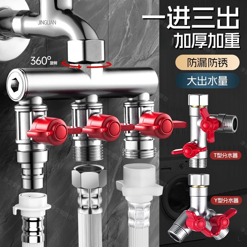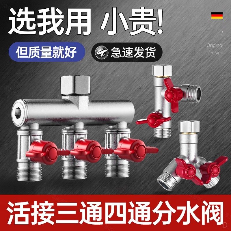📚 水龙头角阀分流器一分二热水器带开关一进三出三通四通水管分水阀