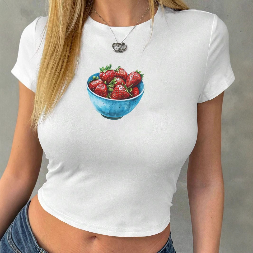 📚 Hot-selling Fruit Strawberry Print Hot Girl Navel-exposed Sl