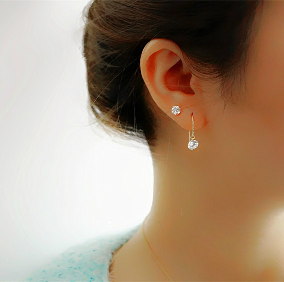 📚 超闪裸钻 美国14K包金锆石耳环耳钩 lloyd 简洁百搭韩国流行耳饰