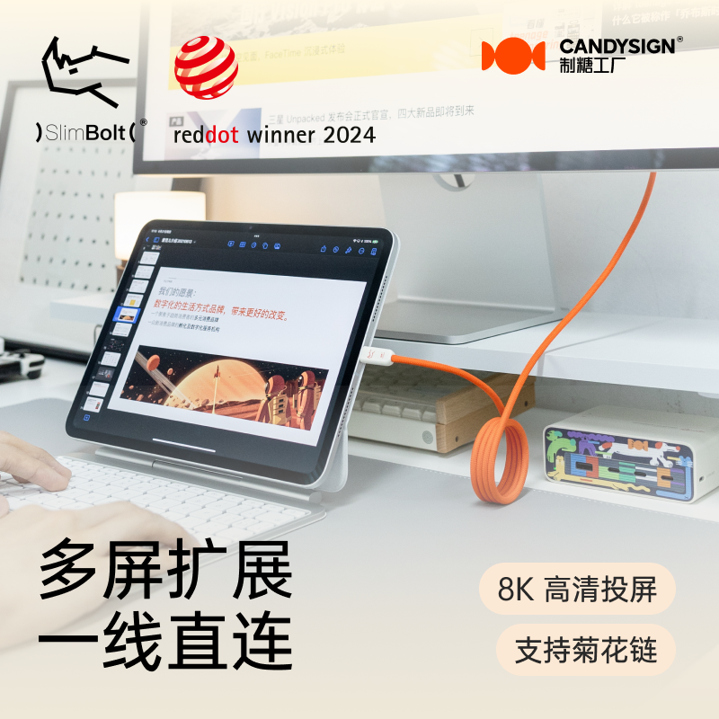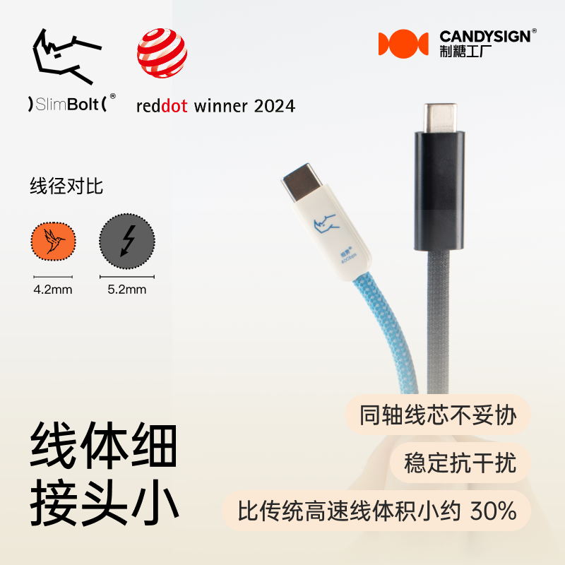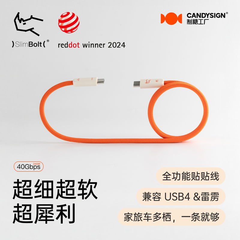 📚 制糖工厂SlimBolt细雳线USB雷电4全功能线Typec充电数据线240W快充8K车载40Gbps适用15/16/17年货礼品