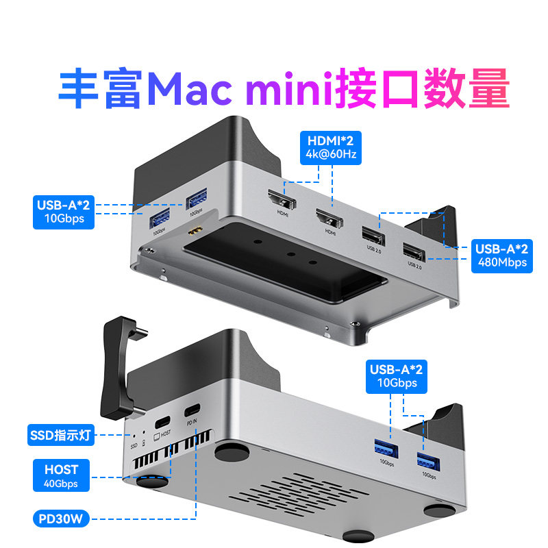 📚 阿卡西斯macmini拓展坞40Gbps适用于苹果电脑M4/M4Pro M.2固态硬盘盒DIY扩容8TB风扇散热usb多接口扩展坞底座