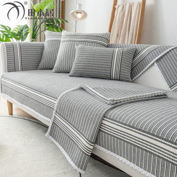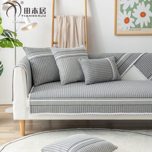 📚 棉麻沙发垫防滑布艺四季通用双面条纹亚麻垫布简约皮沙发坐垫定制