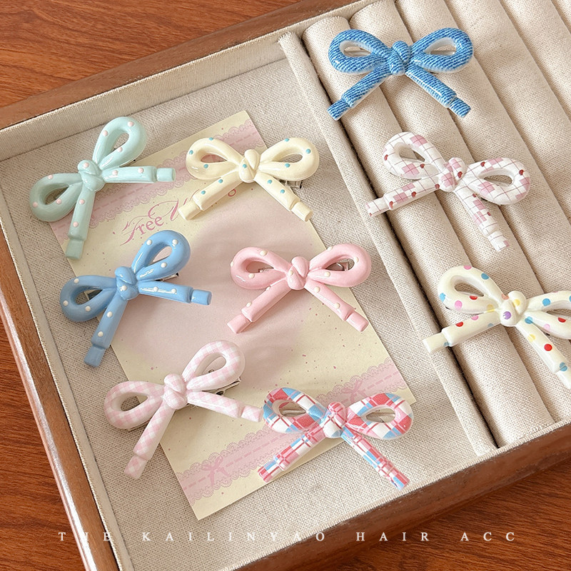 📚 甜美少女蝴蝶结发夹前额侧边刘海夹儿童发卡可爱碎发鸭嘴夹子头饰