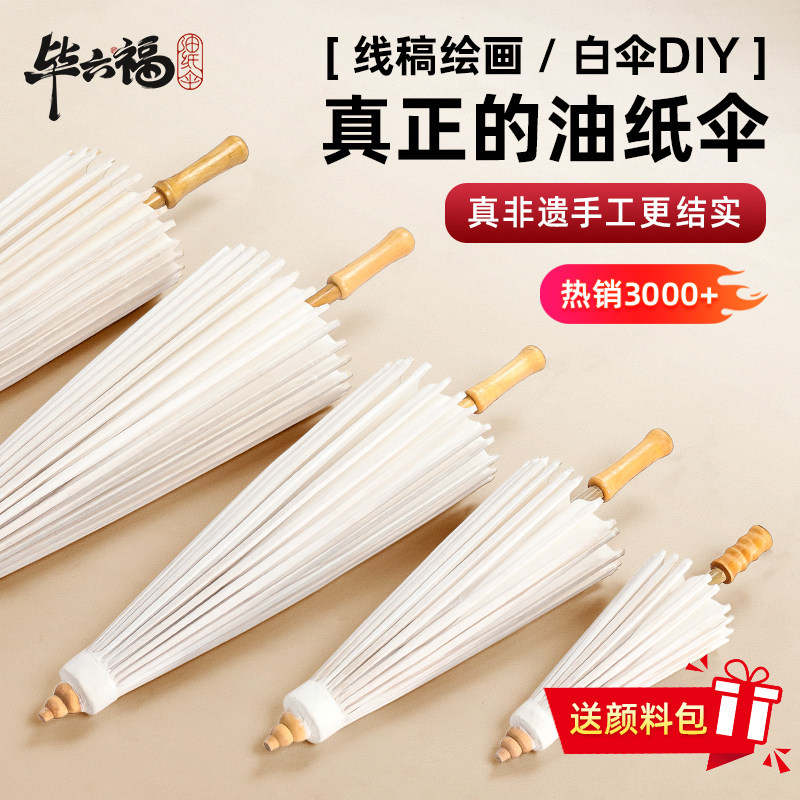 📚 毕六福油纸伞diy材料空白中国风白色可上桐油防雨儿童手工古风伞
