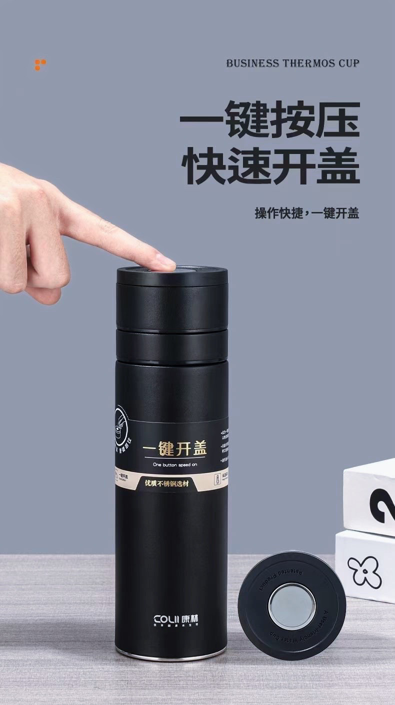 📚 康林一键开盖保温杯车载单手速开水杯高端茶水分离泡茶杯500ml