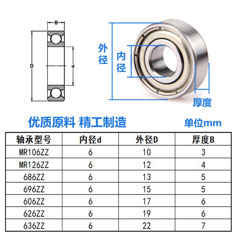 📚 微型小轴承MR106 126 1660 686 696 606 626 636Z ZZ 内径6mm滚珠
