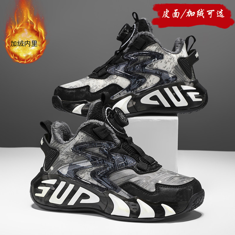📚 儿童篮球鞋男童鞋子2025秋冬季皮面加绒运动鞋黑色大童男孩跑步鞋