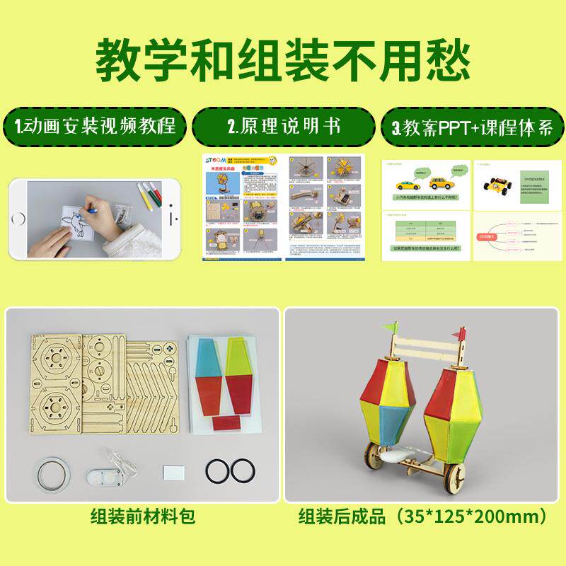 📚 自制滚灯车学生教具儿童玩具手工DIY废物利用创意纸板灯笼材料包