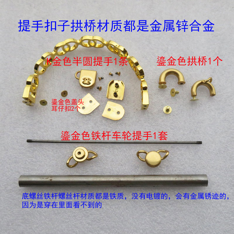 📚 小香菱格包五金配件车轮提手扣子手挽鎏金色螺丝杆子铁管拱桥半圆