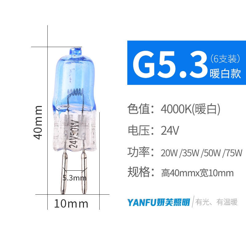 📚 机床灯24v车床卤钨灯珠35w50卤素灯插泡GU5.3粗脚36v插脚小灯泡G4