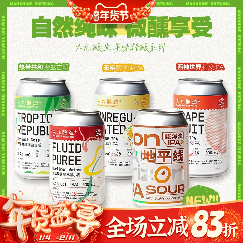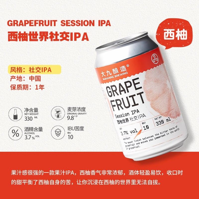 📚 大九酿造精酿啤酒西柚世界无序就酱流体果泥劝酒果热带330ml单罐