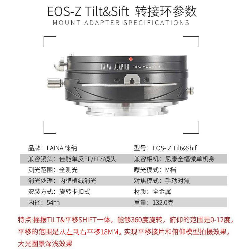 📚 徕纳2代移轴转接环适用佳能EOS EF镜头转尼康全画幅Z口T&S 平移