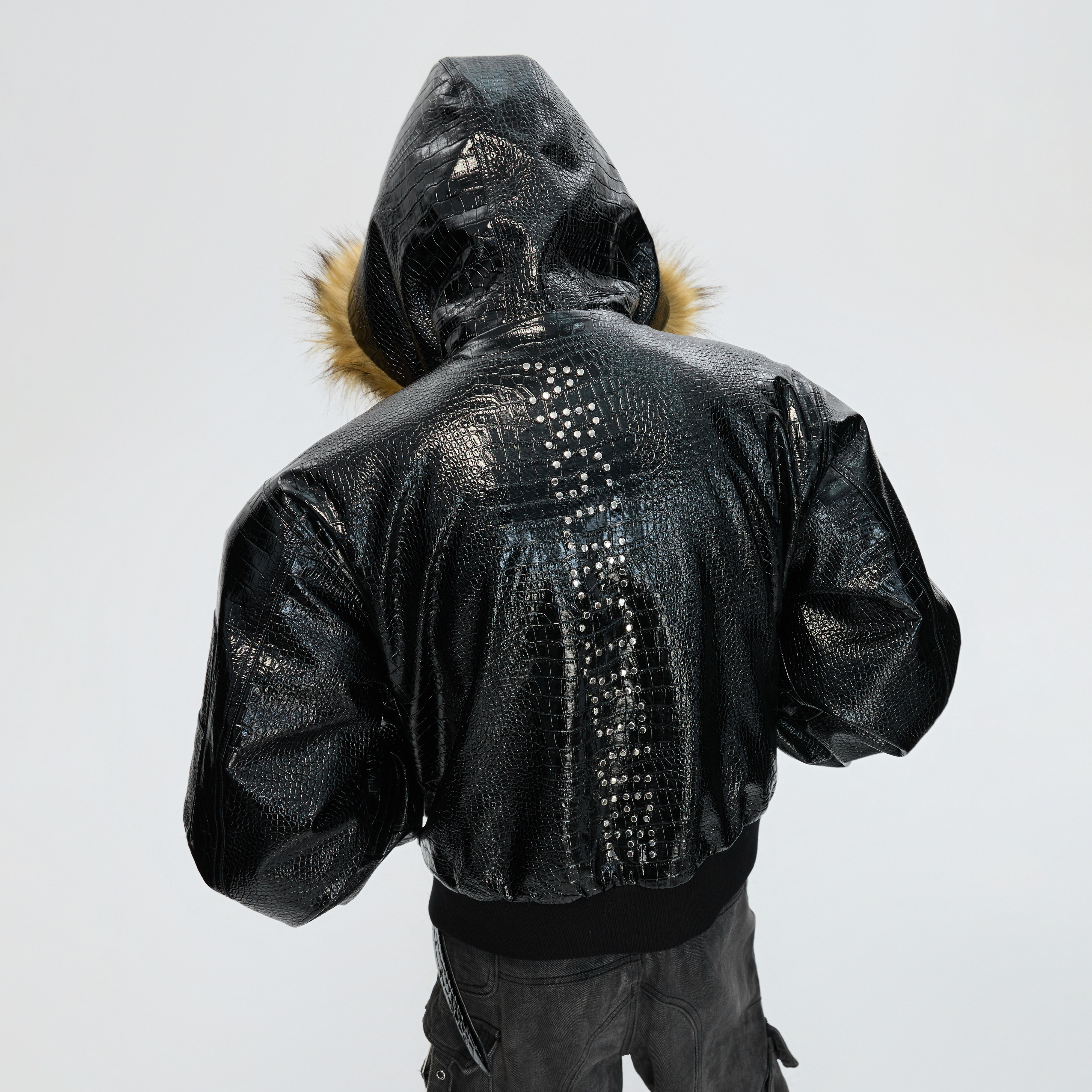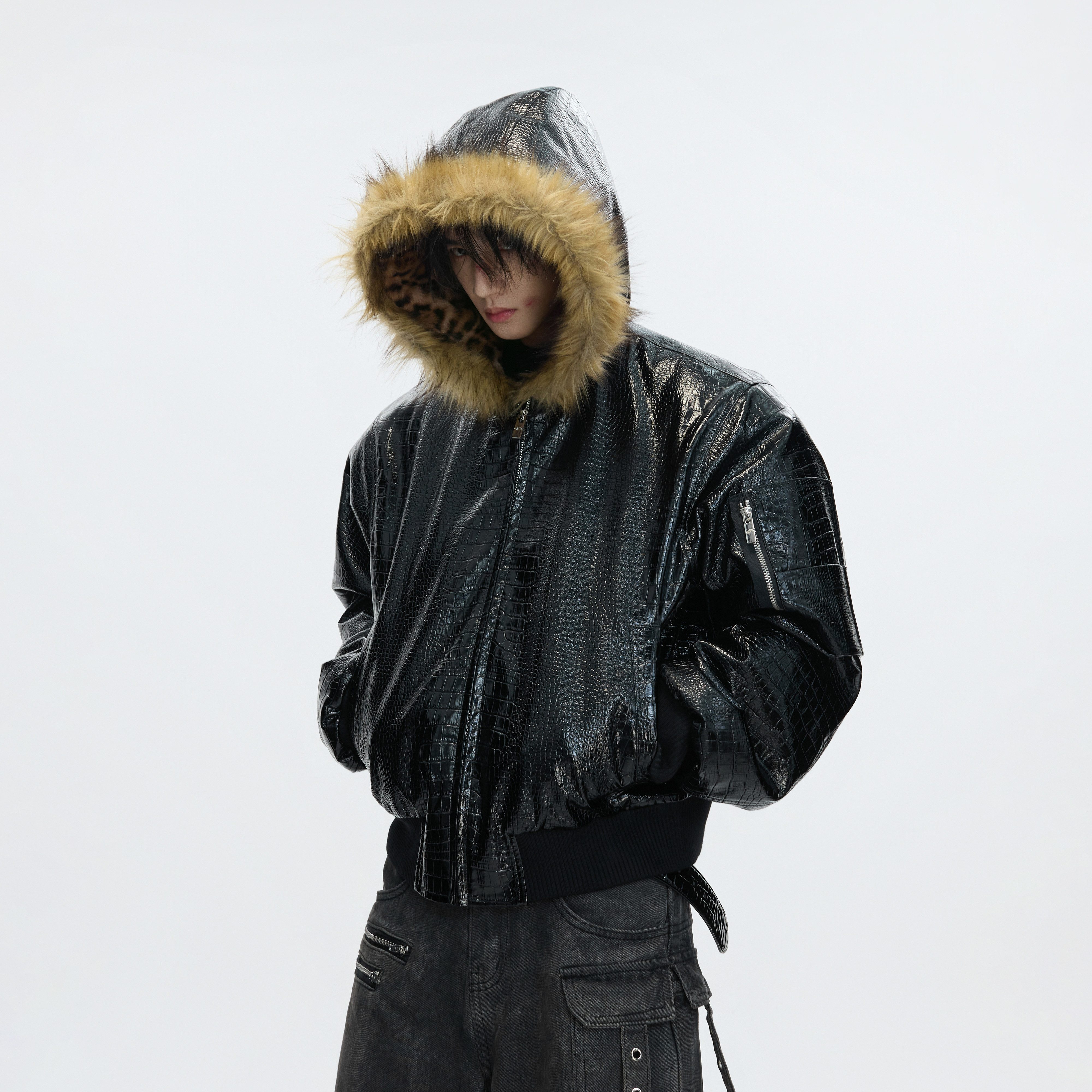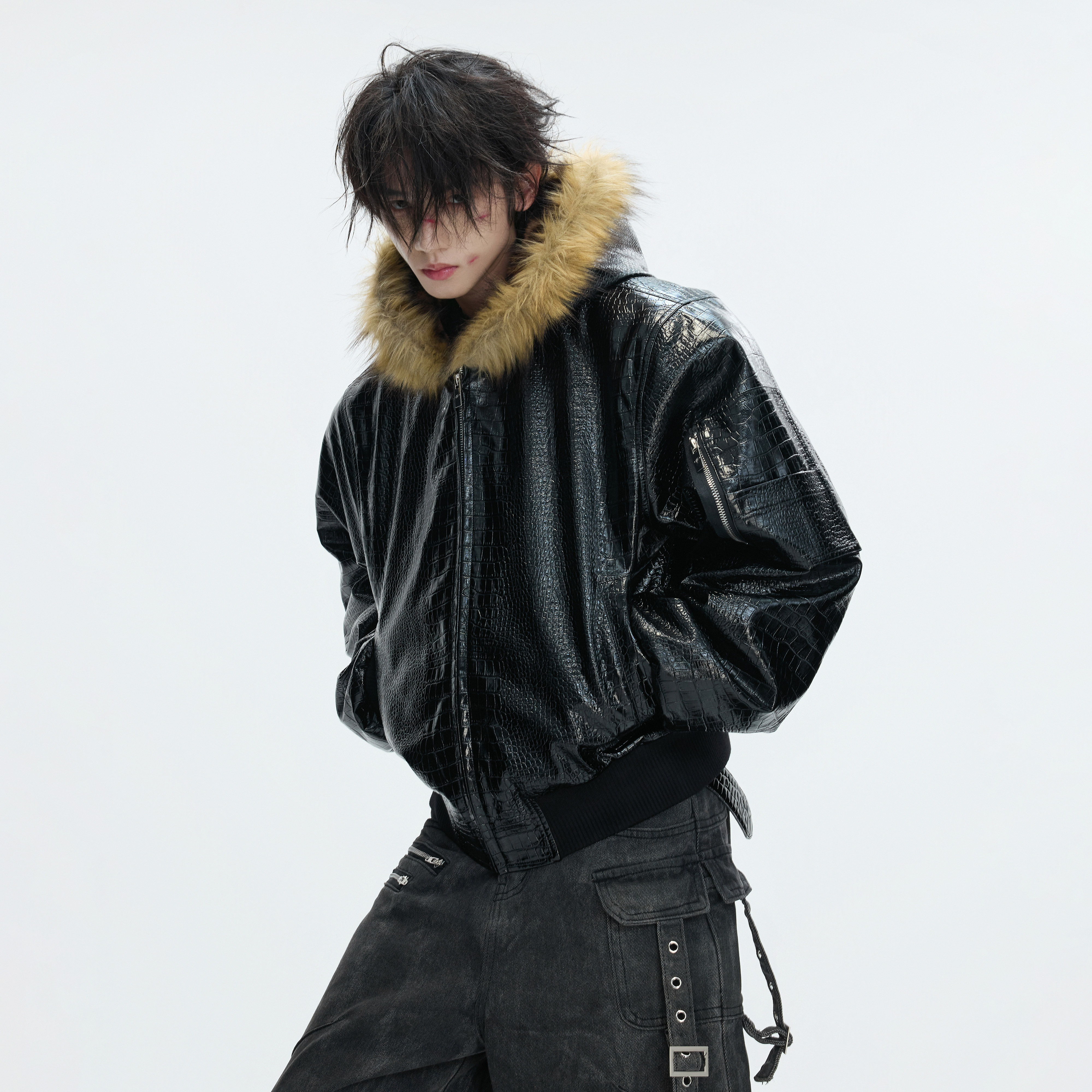 📚 ArguECulturE黑豹烬暖*重磅鳄鱼纹加厚加绒座山雕双面穿豹纹外套